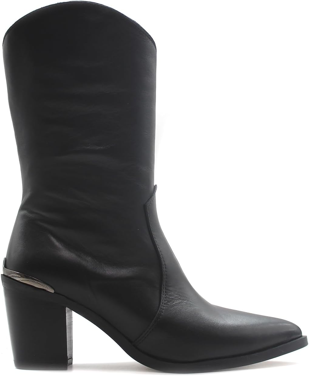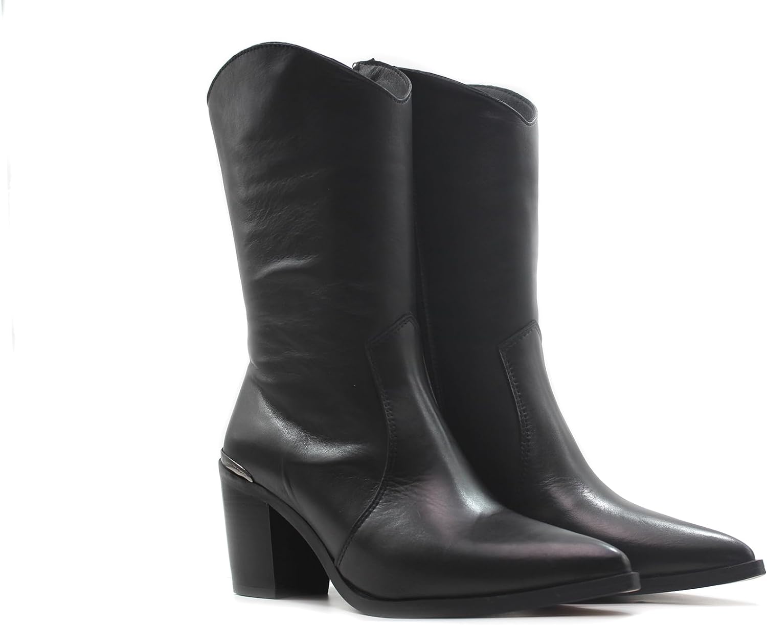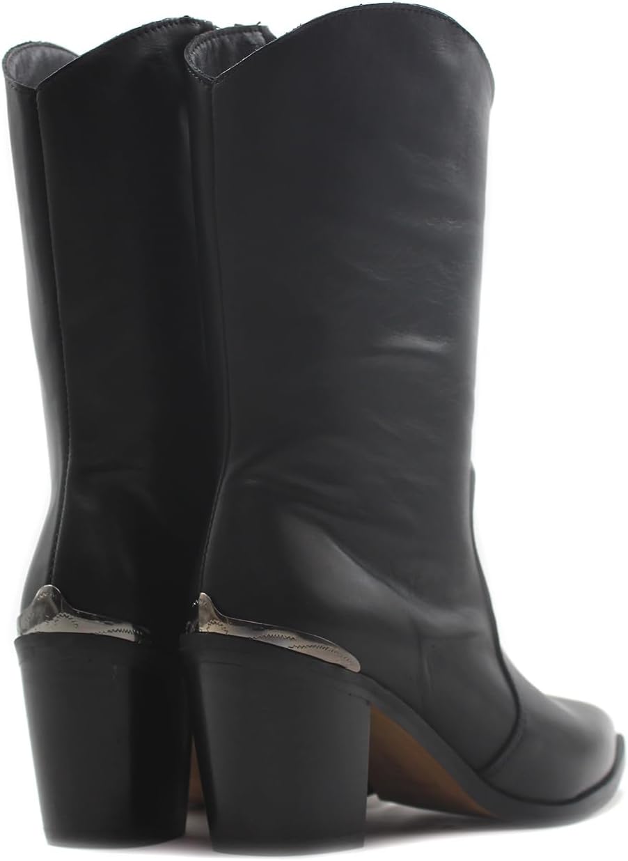 Bota para mujer ALPE ALINA, fabricada en piel (becerro) de color negro con tacón de 6,5 cm, suela antideslizante y puntera afilada, con cierre mediante cremallera y caña media. Composición exterior: Piel. Composición interior: Piel + textil. Plantilla: Textil. Fondo de armario.Media caña.Producto en Amazon.es desde : 30 noviembre 2022