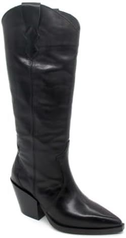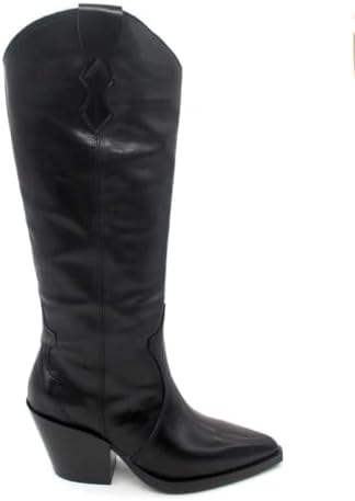 Botas Cowboy de Mujer de la marca Alpe fabricadas en piel con diseños bordados en color negro. Interior en piel y textil. Tiradores laterales que facilitan el calce. Caña de unos 39 centímetros aproximadamente. Piso de goma con tacón ancho de 7,5 centímetros. Producto en Amazon.es desde : 7 octubre 2023