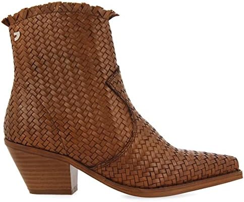 ¡Solo para las más atrevidas! Botines estilo cowboy de piel trenzada en color cuero y tacón medio. Planta con fibras naturales. Plantilla acolchada de látex y forro reciclado. Plantilla y forro de piel curtidos en tenerías que siguen un proceso de curtición más sostenible bajo los estándares de Leather Working Group. ¡Descubre todos los modelos estilo cowboy con la que serás el centro de las miradas! Dimensiones del paquete : 30 x 20 x 10 cm; 1 kilogramos