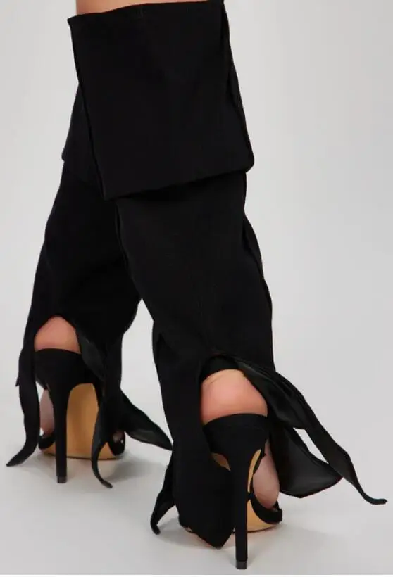 Botas altas hasta el muslo con punta puntiaguda para mujer, botas ajustadas con cremallera trasera sólida, zapatos de estilo Sexy informales para fiesta de invierno