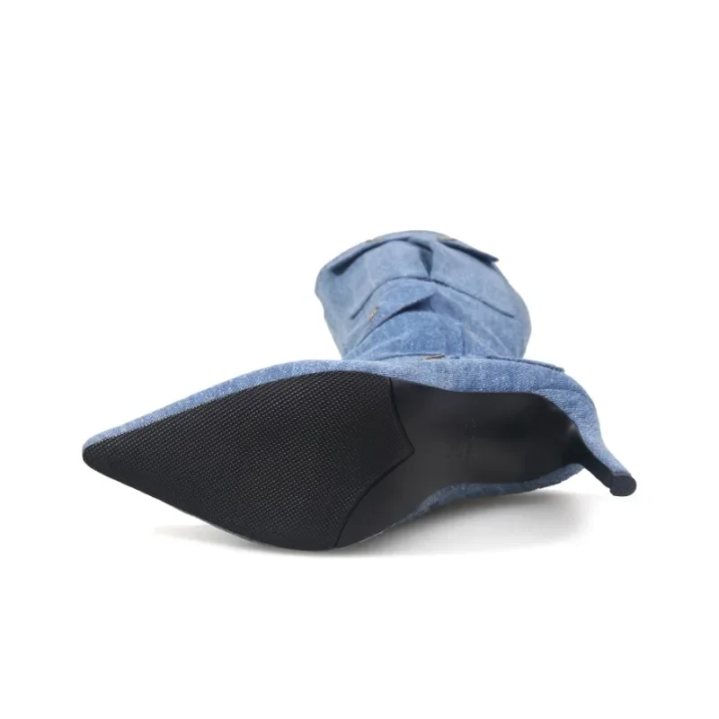 Botas altas hasta el muslo con punta puntiaguda para mujer, botas ajustadas con cremallera trasera sólida, zapatos de estilo Sexy informales para fiesta de invierno