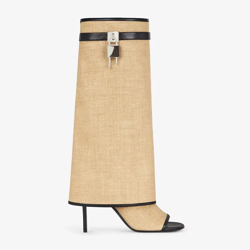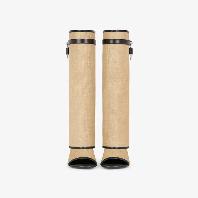 Botas hasta la rodilla de tacón alto delgado para mujer, botas de falda hasta la rodilla, tapa media expuesta a los dientes, botas frescas, botas de espectáculo para caminar de fiesta, Primavera/Verano, nuevo