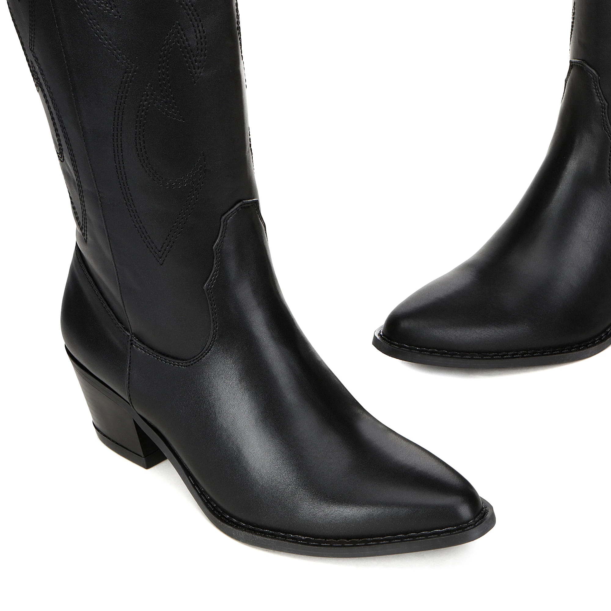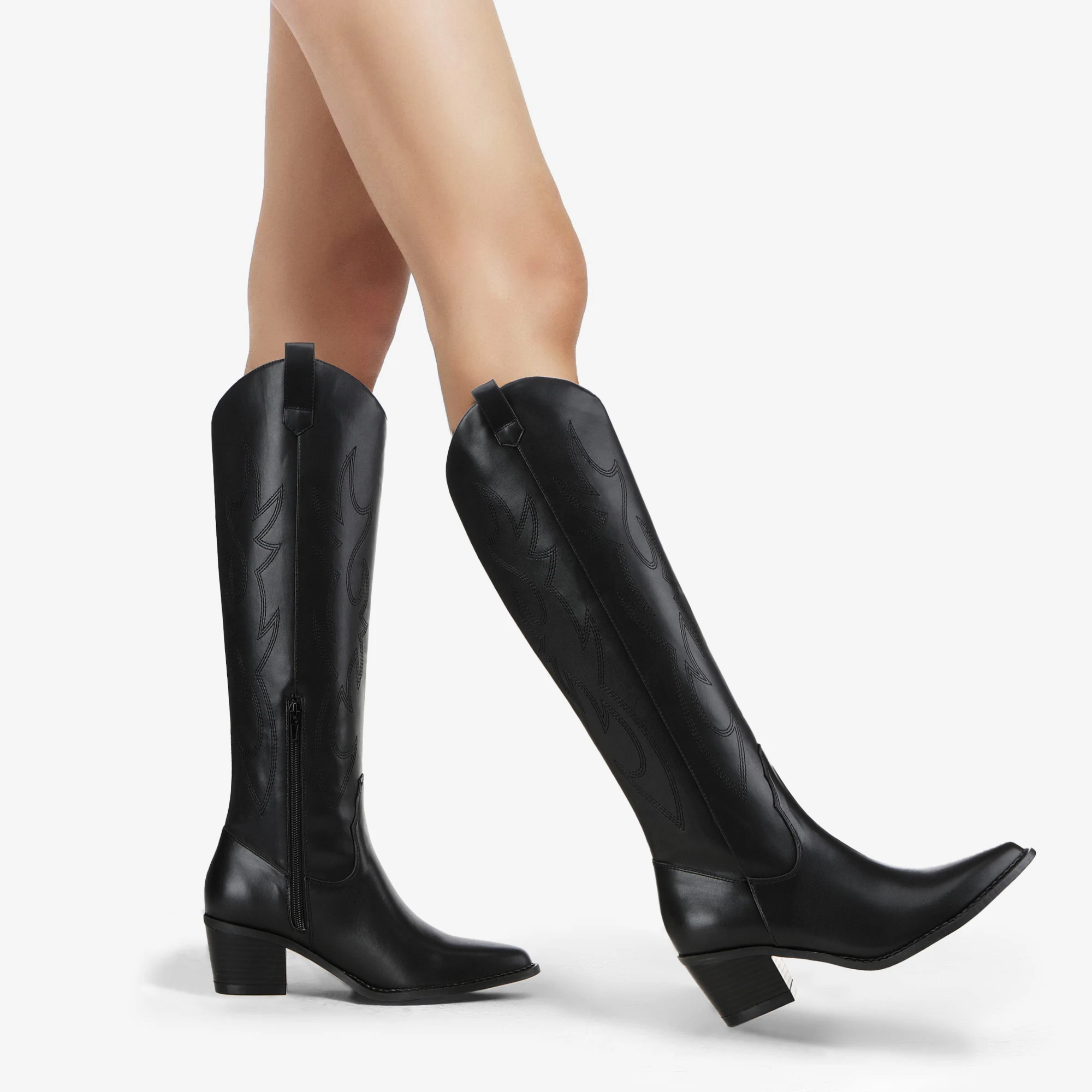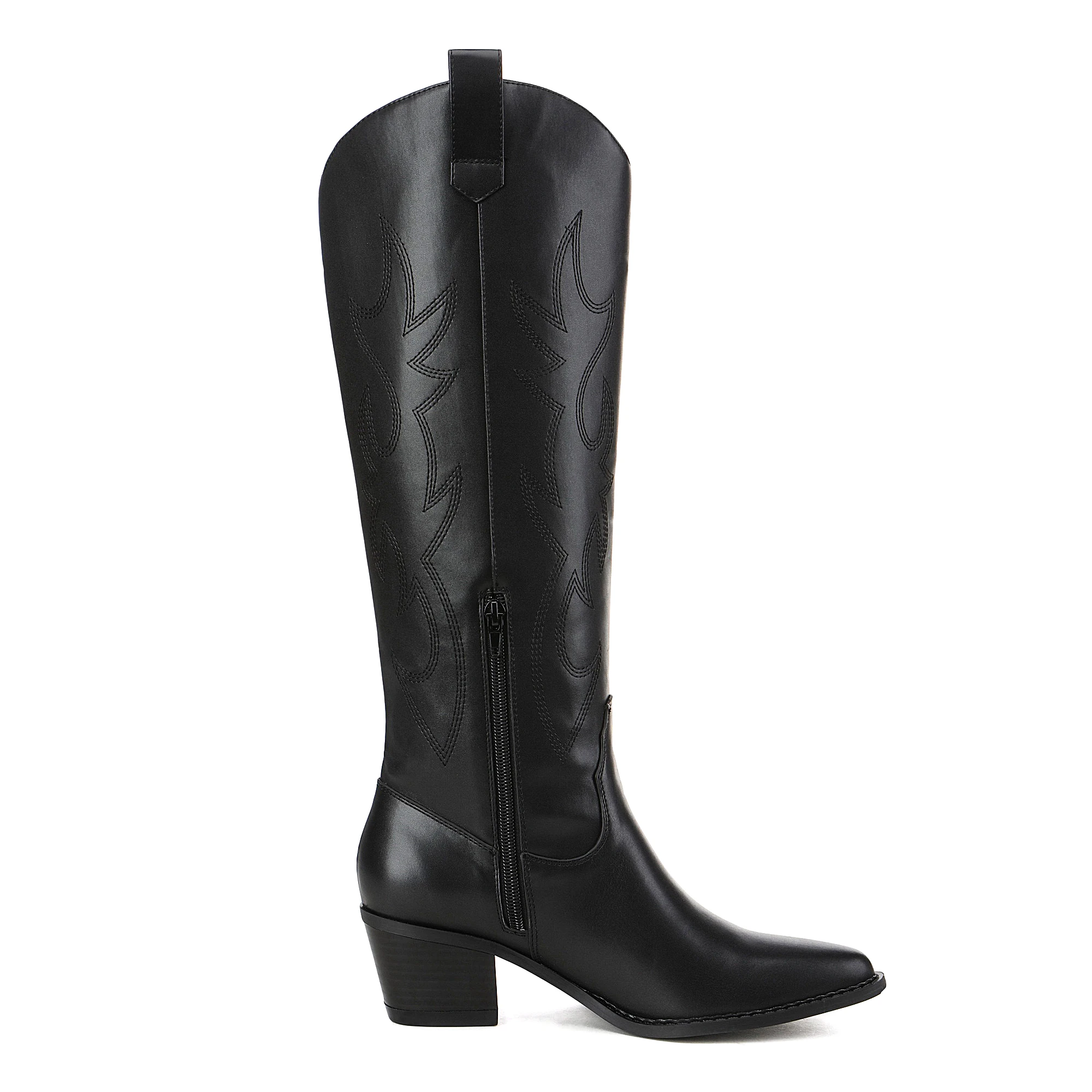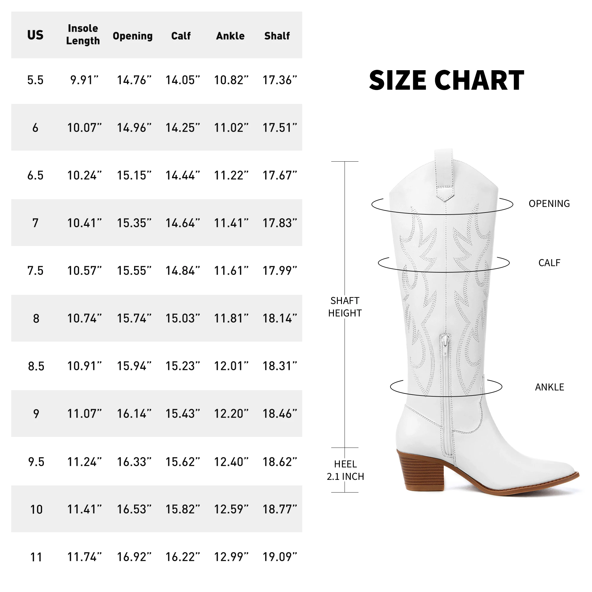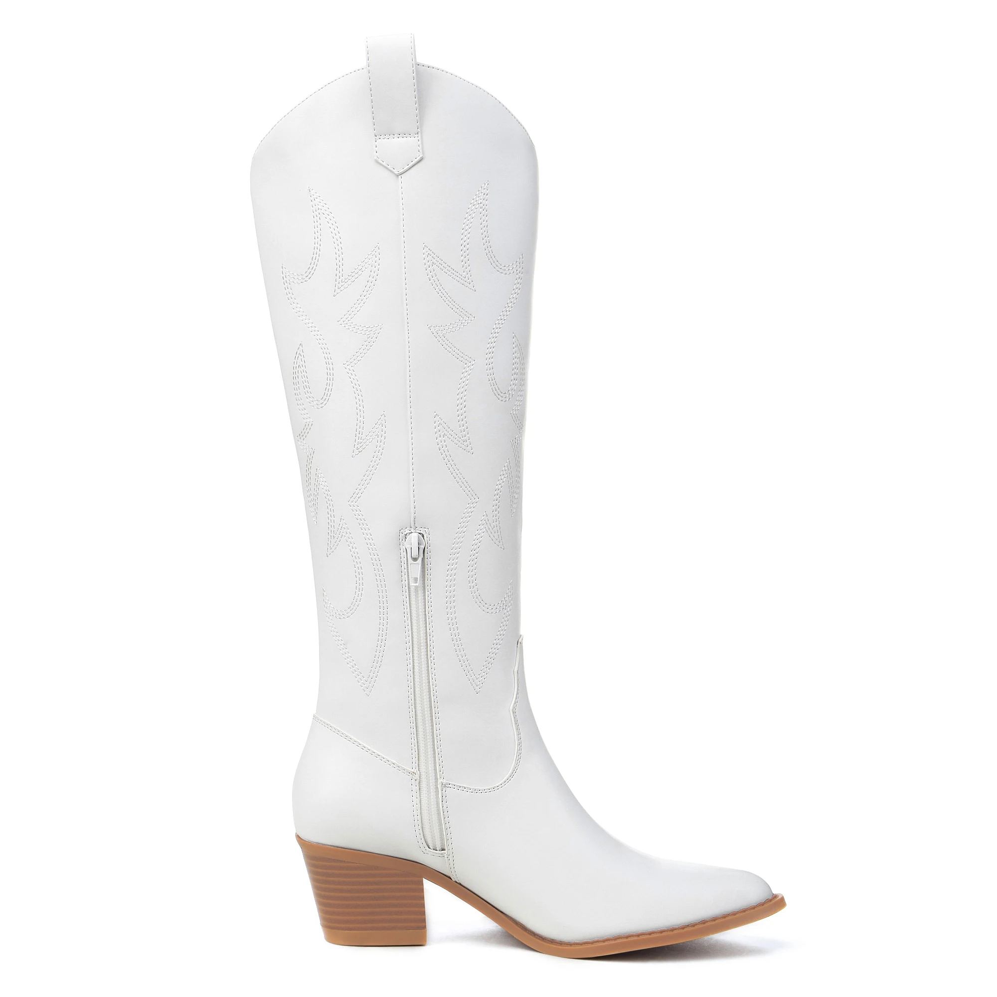 Botas vaqueras bordadas de tacón alto para mujer, botines de media pantorrilla con punta puntiaguda, color blanco, talla grande 43, otoño
