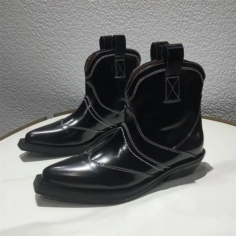 Botines de felpa de cuero genuino para mujer, botas vaqueras con hebilla, aumento de altura, Otoño e Invierno
